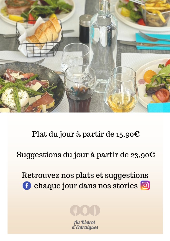 Bienvenue au Bistrot d’Entraigues, une adresse où la tradition et la gourmandise se rencontrent pour vous offrir une expérience culinaire authentique, comme à la maison.